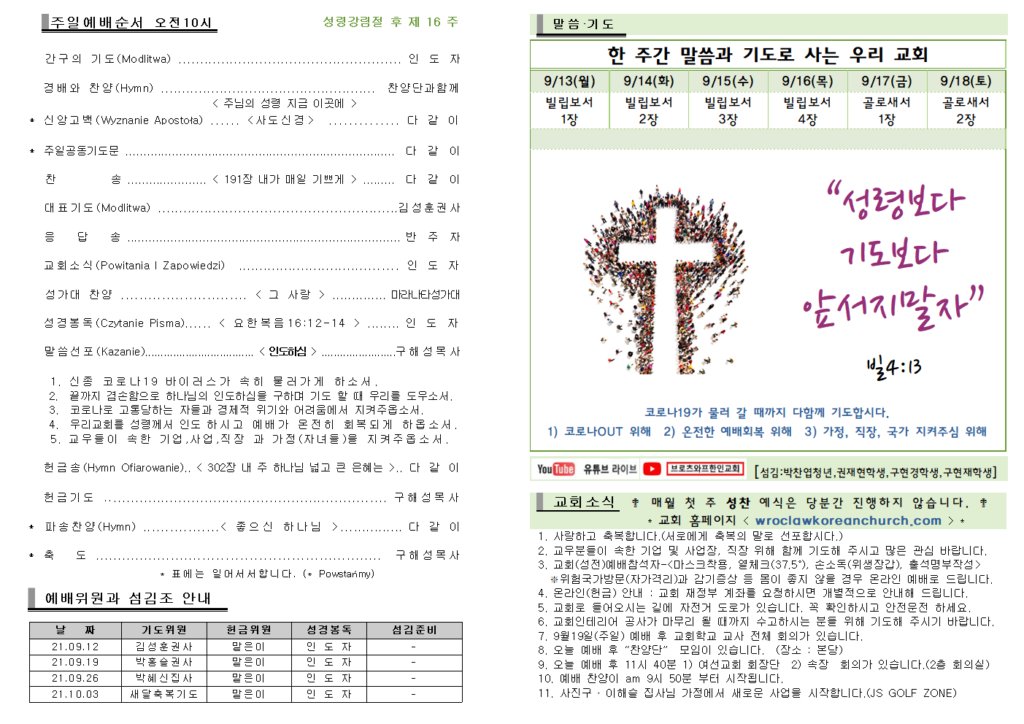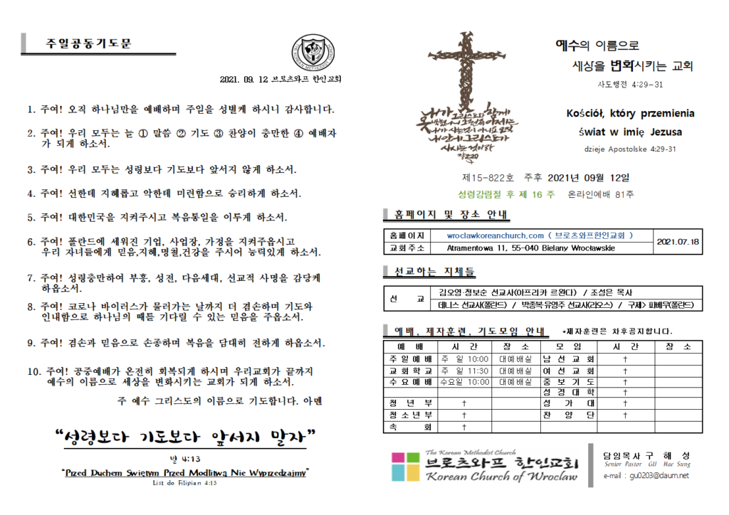 2021년 9월 12일 주보 Post published:2021년 09월 12일 Post category:주보 Post comments:0 Comments Read more articles Previous Post8월22일 주보 Next Post2021. 9. 19 주보 답글 남기기 응답 취소CommentEnter your name or username to comment Enter your email address to comment Enter your website URL (optional) 다음 번 댓글 작성을 위해 이 브라우저에 이름, 이메일, 그리고 웹사이트를 저장합니다. Δ