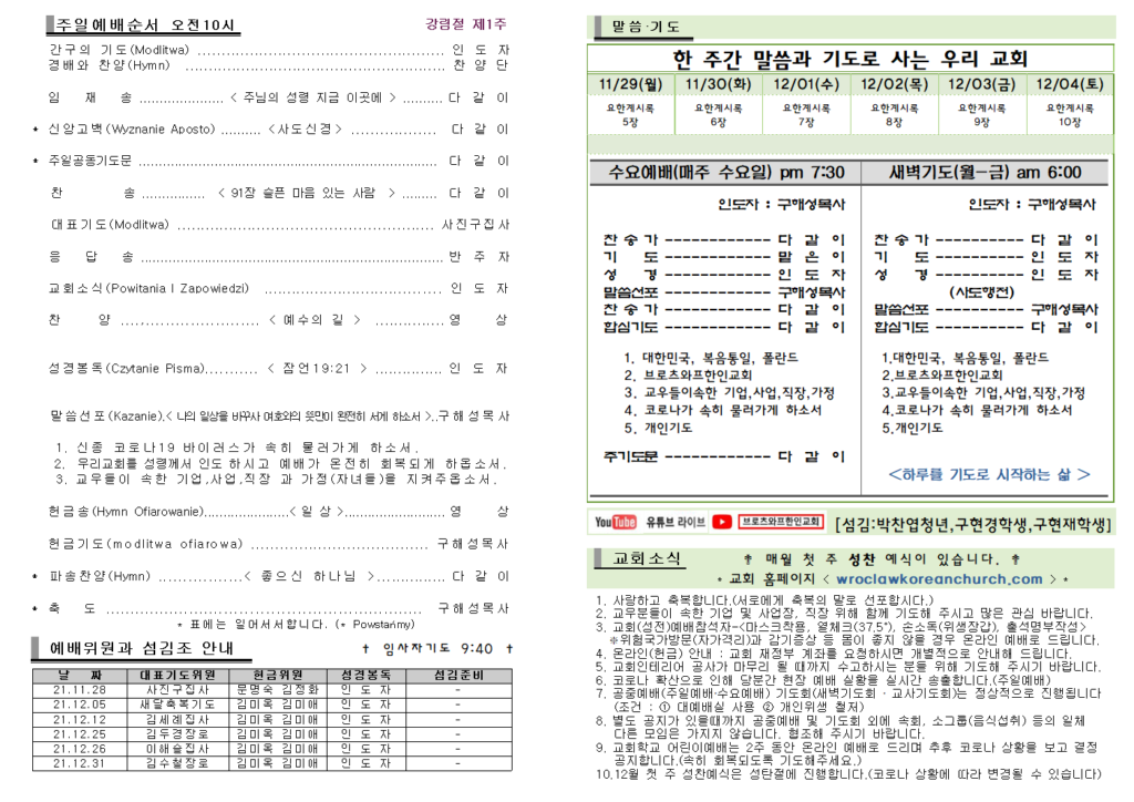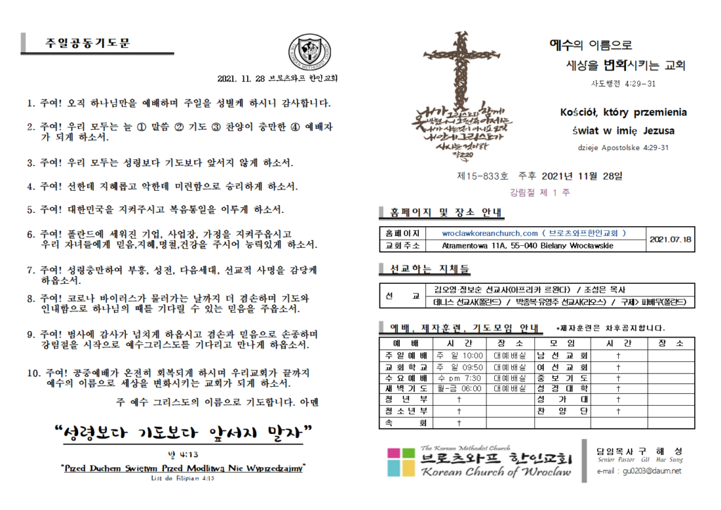 2021.11.28 주일예배 주보 Post published:2021년 11월 28일 Post category:주보 Post comments:0 Comments Read more articles Previous Post2021.11.21 주일예배 주보 Next Post2021.12.5 주일예배 주보 답글 남기기 응답 취소CommentEnter your name or username to comment Enter your email address to comment Enter your website URL (optional) 다음 번 댓글 작성을 위해 이 브라우저에 이름, 이메일, 그리고 웹사이트를 저장합니다. Δ
