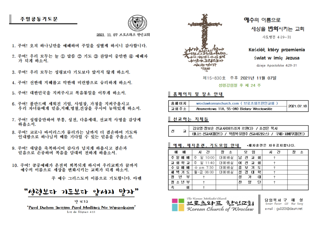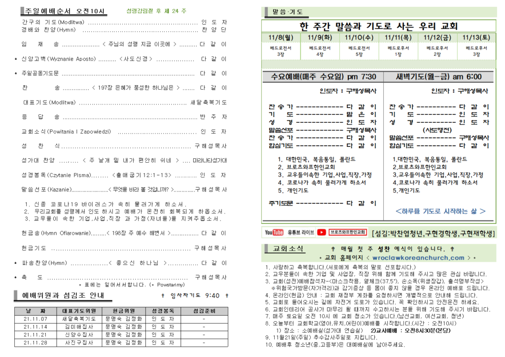 2021.11.7 주일예배 주보 Post published:2021년 11월 07일 Post category:주보 Post comments:0 Comments Read more articles Previous Post2021년 10월31일 주일예배 주보 Next Post2021.11.14 주일예배 주보 답글 남기기 응답 취소CommentEnter your name or username to comment Enter your email address to comment Enter your website URL (optional) 다음 번 댓글 작성을 위해 이 브라우저에 이름, 이메일, 그리고 웹사이트를 저장합니다. Δ