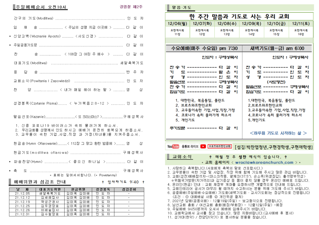 2021.12.5 주일예배 주보 Post published:2021년 12월 05일 Post category:주보 Post comments:0 Comments Read more articles Previous Post2021.11.28 주일예배 주보 Next Post2021.12.12 주보 답글 남기기 응답 취소CommentEnter your name or username to comment Enter your email address to comment Enter your website URL (optional) 다음 번 댓글 작성을 위해 이 브라우저에 이름, 이메일, 그리고 웹사이트를 저장합니다. Δ