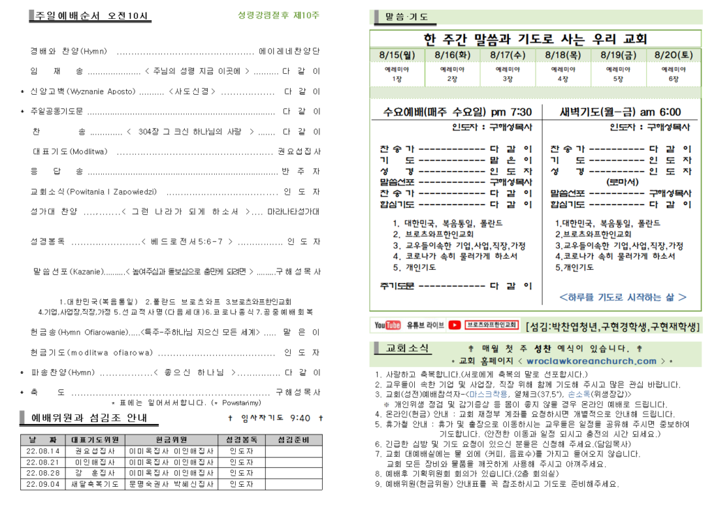 2022년8월14일 주보 Post published:2022년 08월 14일 Post category:주보 Post comments:0 Comments Read more articles Previous Post8월7일 주보 Next Post2022.8.21 주보 답글 남기기 응답 취소CommentEnter your name or username to comment Enter your email address to comment Enter your website URL (optional) 다음 번 댓글 작성을 위해 이 브라우저에 이름, 이메일, 그리고 웹사이트를 저장합니다. Δ