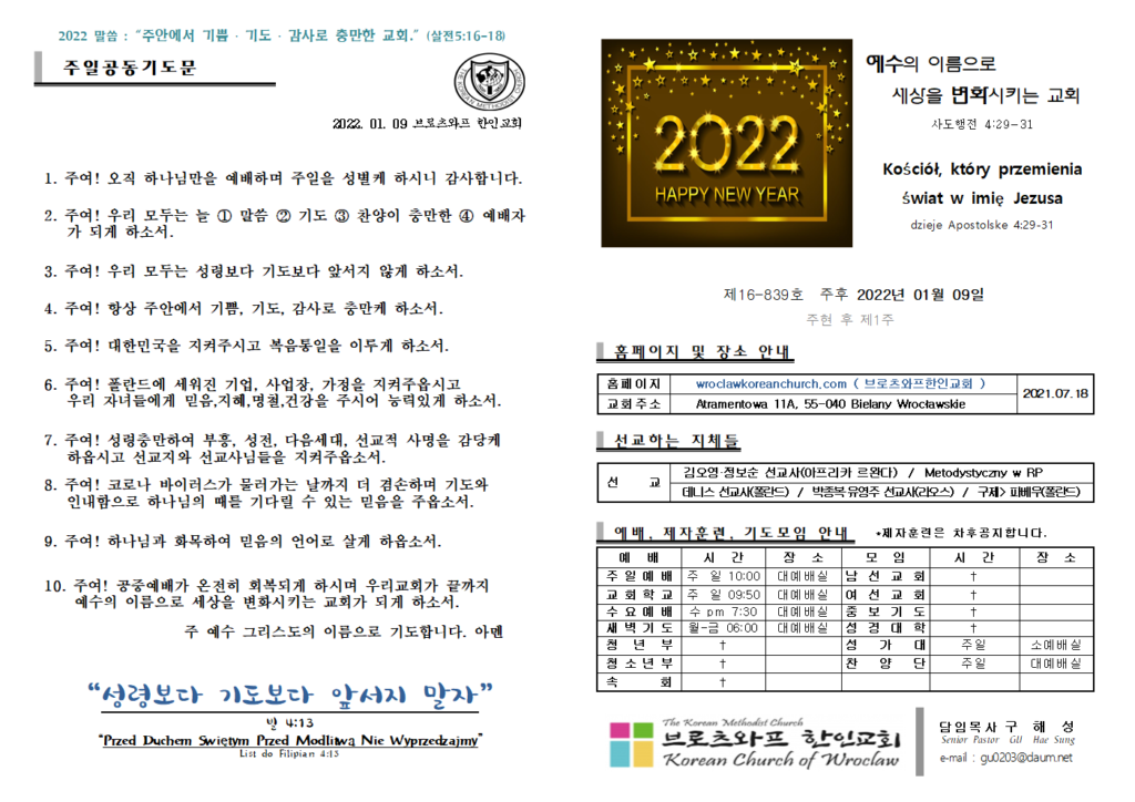 2022.1.9 주일예배 주보 Post published:2022년 01월 09일 Post category:주보 Post comments:0 Comments Read more articles Previous Post2022.1.2 주일예배 주보 Next Post2022.1.16 주보 답글 남기기 응답 취소CommentEnter your name or username to comment Enter your email address to comment Enter your website URL (optional) 다음 번 댓글 작성을 위해 이 브라우저에 이름, 이메일, 그리고 웹사이트를 저장합니다. Δ