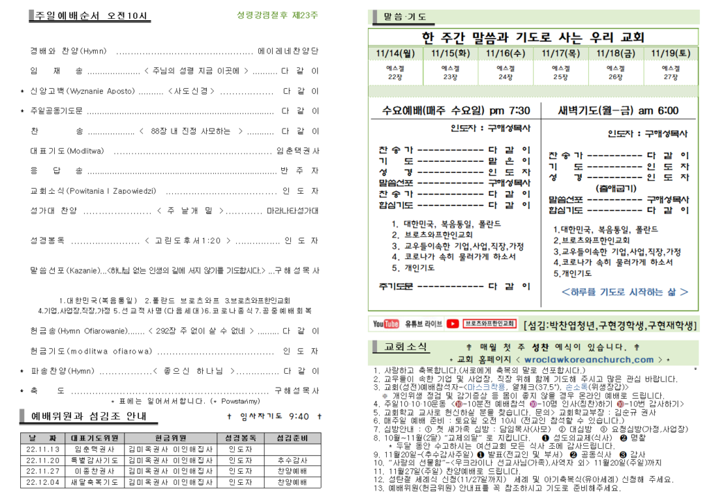 2022.11.13 주보 Post published:2022년 11월 13일 Post category:주보 Post comments:0 Comments Read more articles Previous Post2022년 11월 6일 주보 Next Post2022.11.20주보 답글 남기기 응답 취소CommentEnter your name or username to comment Enter your email address to comment Enter your website URL (optional) 다음 번 댓글 작성을 위해 이 브라우저에 이름, 이메일, 그리고 웹사이트를 저장합니다. Δ