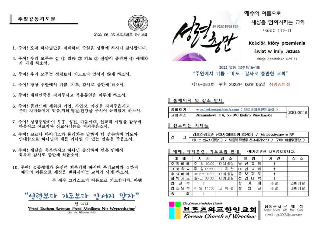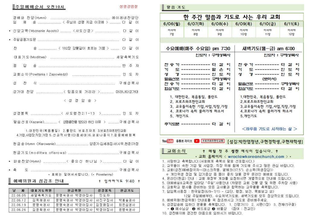 2022.6.5 주일예배 주보 Post published:2022년 06월 05일 Post category:주보 Post comments:0 Comments Read more articles Previous Post2022.5.29 주보 Next Post2022년6월12일 주일예배 주보 답글 남기기 응답 취소CommentEnter your name or username to comment Enter your email address to comment Enter your website URL (optional) 다음 번 댓글 작성을 위해 이 브라우저에 이름, 이메일, 그리고 웹사이트를 저장합니다. Δ