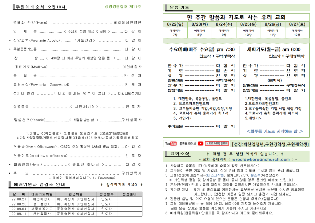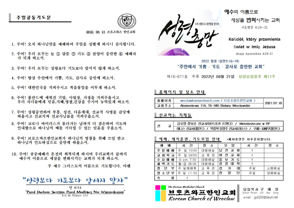 2022.8.21 주보 Post published:2022년 08월 21일 Post category:주보 Post comments:0 Comments Read more articles Previous Post2022년8월14일 주보 Next Post2022년 8월 28일 주일예배 주보 답글 남기기 응답 취소CommentEnter your name or username to comment Enter your email address to comment Enter your website URL (optional) 다음 번 댓글 작성을 위해 이 브라우저에 이름, 이메일, 그리고 웹사이트를 저장합니다. Δ